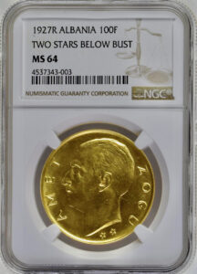 アルバニア1927年100フランガ金貨 2スターNGC MS64