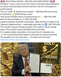 トランプさんはベッセント財務長官に金を10万ドルにする命令ができる