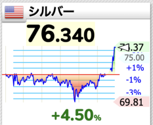 久々に金銀上昇、金は4779ドル、銀は76ドル