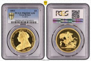 イギリス1893年ヴィクトリア5ポンド金貨PCGS PR65DCAM 2250万円→1990万円…