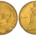 イタリア1912年100リレ金貨豊穣の女神 NGC MS62±をご紹介します。1912年に発行されたイタリアの100リレ金貨でヴィットリオ エマヌエル3世の左向きの肖像が描かれています。もう片面はス...