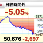 円安、株安、ビットコインが安くなっています。金銀は少し上昇しています。ドル円は160.23という世界で日本円が最も価値のないお札に成り下がっています。日経の株価は昨日より2,200円下げて5...