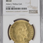 フランス1859年ナポレオン3世100フラン金貨 無冠NGC MS62です。重さ32.26g 0.9334オンス 金性0.9 発行数22,000枚. ナポレオン100フラン金貨もだんだん出回りが少...