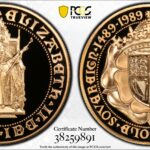 委託でお預かりしたイギリス1989年ソブリン発行500年5ポンド金貨 PCGS PR70 DCAMです。もう市場ではあまり見ることがありません。特に70鑑定はほとんど退蔵されてしまったようです。ヘンリー7世の時に初めて発行されたソブリン金貨の500年を記念して5000まいが発行されました。エリザベ...