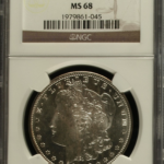 アメリカ1882年-SモーガンダラーNGC MS68です。発行枚数は多いモーガンダラーですが、通常に使われていた、しかも使いやすい1ドル銀貨なので摩耗が激しいものが多いコインです。このMS68は1882年では相当いい部類に入り、上には68★と68+が合計25枚あるのみです。アメリカではモーガンダ...