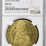 初めて見ました。レオポルト1世の大型金貨しかもMS62。オリジナルではありませんが1953年に発行されたリストライクの1枚です。4ダカットの重さなので13gほどの金貨ですが大型で見栄えがあります。NGCでもこの1枚しか登録されていません。MS62ですが最高鑑定です。私が欲しい。レオポルト1世はハ...