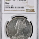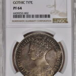 イギリス1847年ゴシッククラウン銀貨NGC PF60 プレーンエッジを委託でお預かりしました。最も美しい銀貨とされるゴシッククラウンは数年前から争奪戦が起き、それに伴って価格も上昇してしまいました。今市場から消えてしまっている状況です。このクラウン銀貨にはエッジの形状がアンデシモとプレーンがあ...