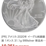 銀価格は最高値を更新していますが、1オンスの銀貨、アメリカンイーグルが最も安いお店で19,251円です。10枚で192,000円、100枚で192万円、500枚のモンスターボックスは962万円になります。私どもで数年前に販売を始めた時は270万円ほどが最も安い価格でした。300万円内外でお求めにな...