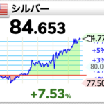 銀が急騰 84.65ドル 7.5%の上昇をしました。120ドルから下げて調整をしていましたが、上値の抵抗ラインを突き破ってきましたので、今後は120ドル以上を目指すようになるでしょう。1オンス銀貨100万円セットシリーズ 2月21日 今の時点での1オンス銀貨のお渡し価格です。一昨日と昨日、現在の価...