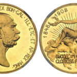 オーストリア1908年100コロナ金貨NGC PF61CAM 雲上の女神をご紹介します。オーストリアで1908年に発行された100コロナ額面の金貨です。おそらく世界でもっとも人気のある大型金貨と言っても過言ではありません。表面はフランツヨーゼフの右向きの肖像、裏面は女神が雲に乗って月桂冠を手渡そう...