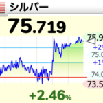 銀は朝方より2ドル上昇、75.7ドル→77.7ドル