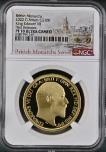 イギリス2022年エドワード7世王朝100ポンド金貨NGC PF70 UCAMです。
