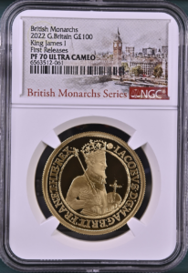 イギリス2022年ジェームス1世王朝100ポンド金貨NGC PF70 UCAM