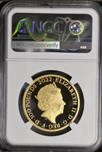 イギリス2022年ジョージ1世王朝100ポンド金貨NGC PF70 UCAMです。