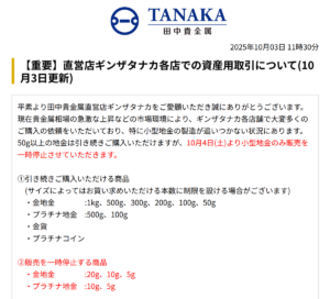 三菱マテリアルも先月純金積み立てからの金の引き出しを停止しました。