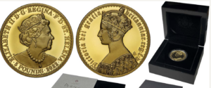 ゴシッククラウンに描かれているヴィクトリア女王の1オンス金貨です。