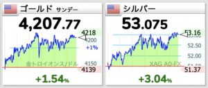 金銀の最高値更新は止まりません。金4,218ドル/銀53.16ドル