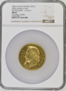 当時の皇帝ナポレオン3世が優秀者に与えたゴールドメダルで NGC MS61の鑑定がついています。