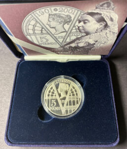 イギリス2001年ヴィクトリア没後100年と2002年戴冠50年5ポンド銀貨を入手しました。