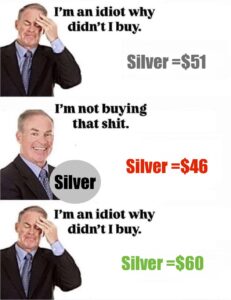 銀が51ドルの時:自分は馬鹿だなぁ。あの時なんで買わなかったんだろう。