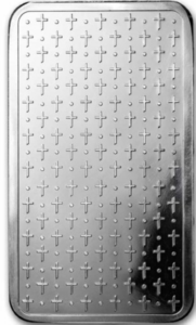 10オンスの.999ファインシルバーと刻まれていて、裏面は十字が全面に施されています。