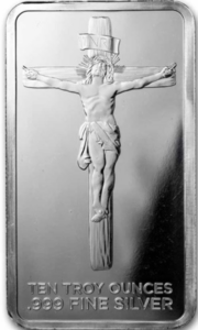 10オンスの.999ファインシルバーと刻まれていて、裏面は十字が全面に施されています。