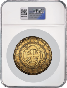 このコインがユニークなアイテムであることに加え、スペイン王族との個人的な結びつきが、このコインの真のトロフィー・ピースとしての地位を高めています。