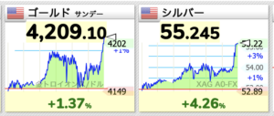 金より銀の方が2倍弱(197%)上昇が強かったと言うことになります。