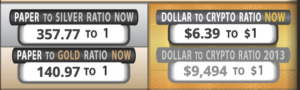 アメリカ借金時計によりますと、ペーパー対現物の銀は357対1になっています。
