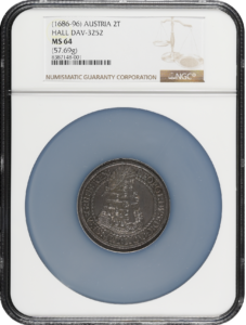 オーストリア1686年レオポルト1世 2ターラー銀貨NGC MS64をご紹介します。