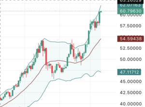61.9ドルと言う過去最高値を出して今61.83ドル、今日は65ドルに近づく様相を見せています。