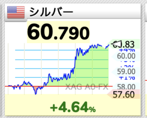 58ドルで停滞していた銀価格が2ドル以上上げ61ドル間近になりました。