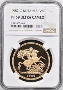 イギリス1982年エリザベス5ポンド金貨 NGC PF69 UCAM