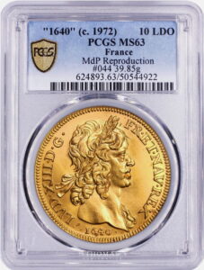 フランス1640/1972年ルイ13世10ルイドール金貨 PCGS MS63