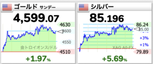 金は4630ドル、銀は86.24ドルの過去最高値
