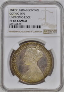 イギリス1847年ゴシッククラウン銀貨NGC PF65CAMを委託でお預かりしました。