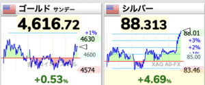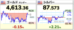 1月13日の日中は85ドル台だった銀価格は1時間前から急騰を始めました。
