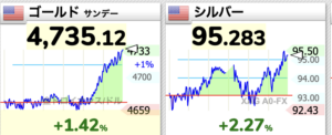 金は4735ドル、銀も95.5ドルという過去最高値をつけました。
