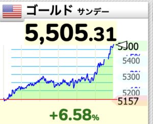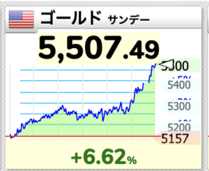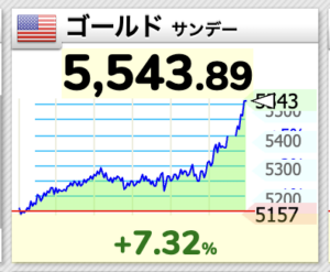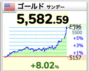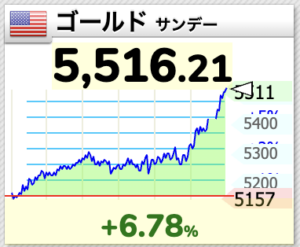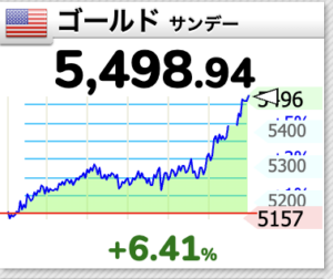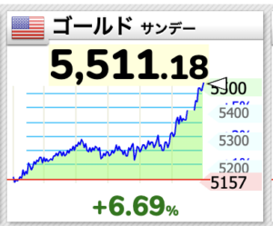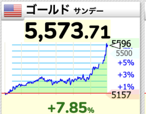 わずか数分の間に金は5,491ドルから5,596まで100ドル上昇しました。