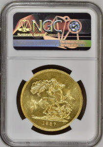 なかなか出てこないイギリス1887年ヴィクトリア5ポンド金貨NGC MS63をご紹介します。