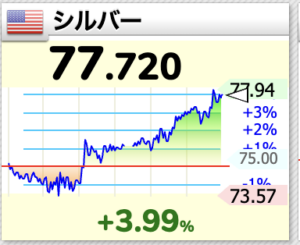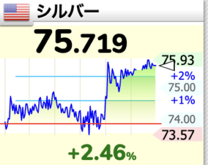 銀は朝方より2ドル上昇、75.7ドル→77.7ドル