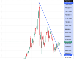 最高値の高値12ドルから暴落しましたが、高値を結んだ抵抗の青い線を完全に切って上昇を続け始めました。