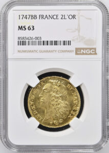 フランス1747年ルイ15世2ルイドール金貨NGC MS63 最高鑑定