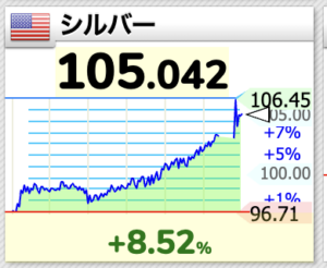 銀が103.4ドルと一気に100ドルを超えました。金も4,990ドルと5,000ドル手前
